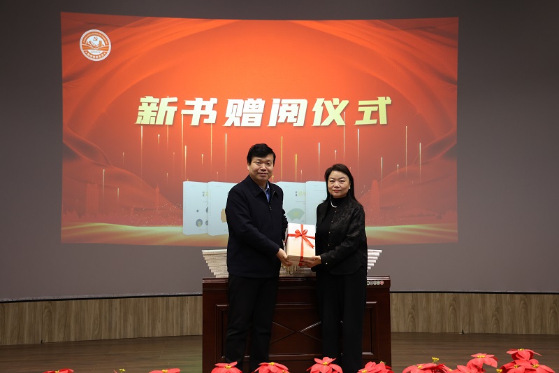 新书发布会上,宋林杰、丁淑杰共同为“魅力郑州”丛书新书揭幕。河南省图书馆、郑州市图书馆接受书籍捐赠。