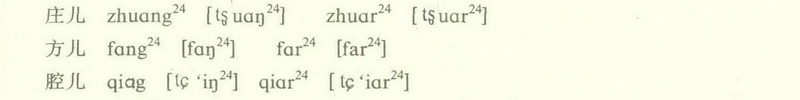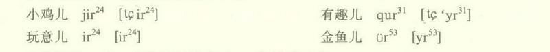 ]、ê[ε]、u[u]的直接在后面加上卷舌动作r。如: