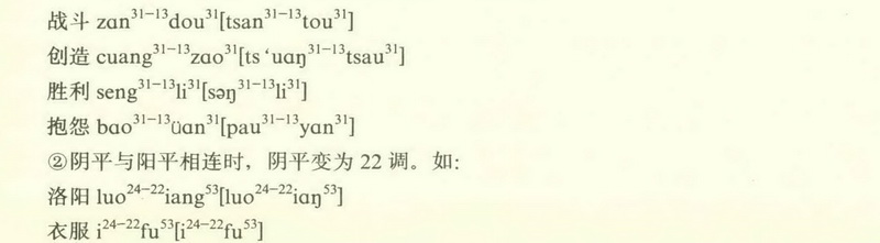 ①去声和去声相连时,前一个字变成阴平13调。如: