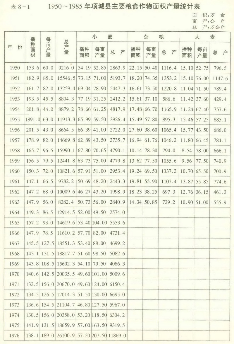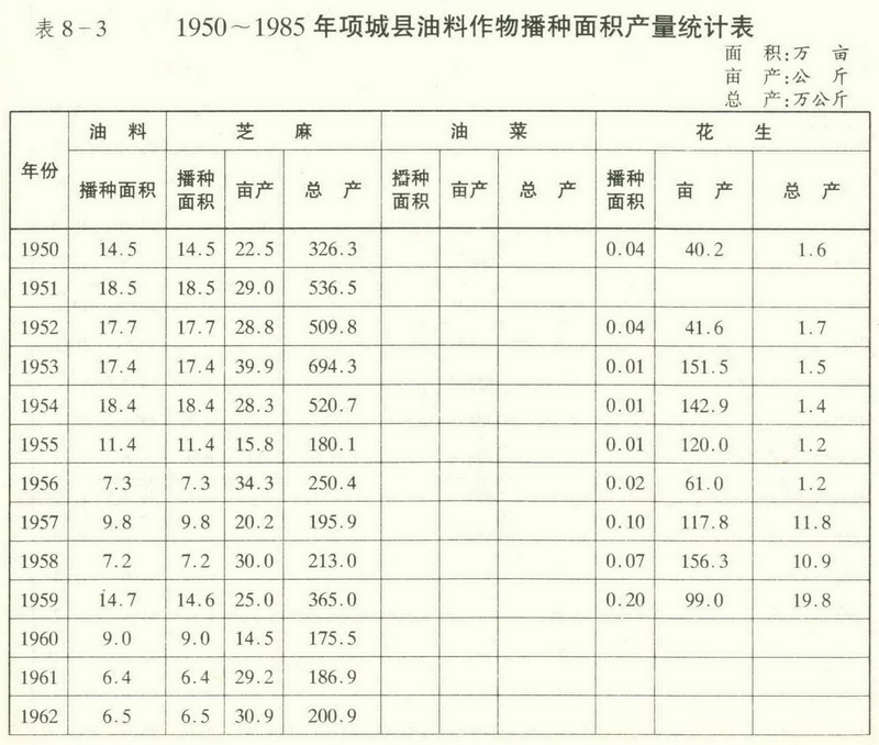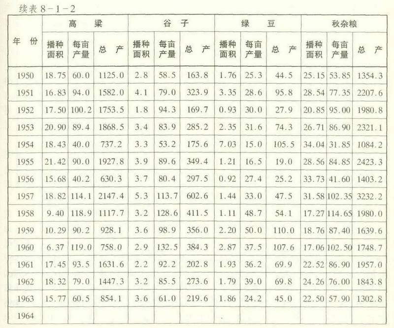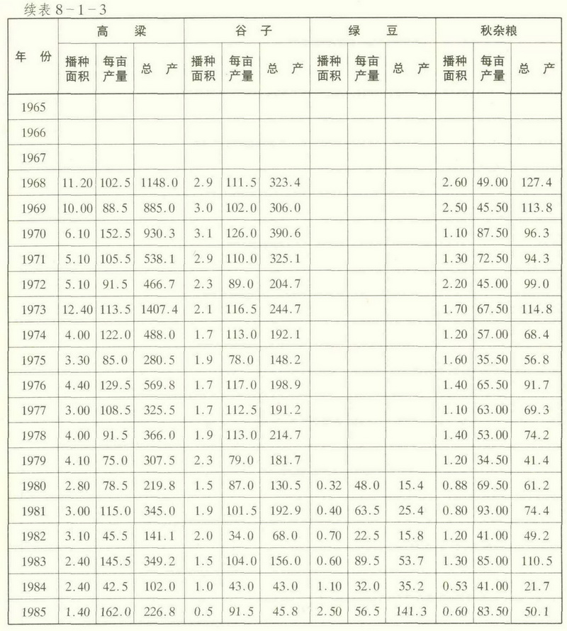 此外,黍稷等古老作物,建国初期有小面积种植,50年代后期,因产量低而歇种。